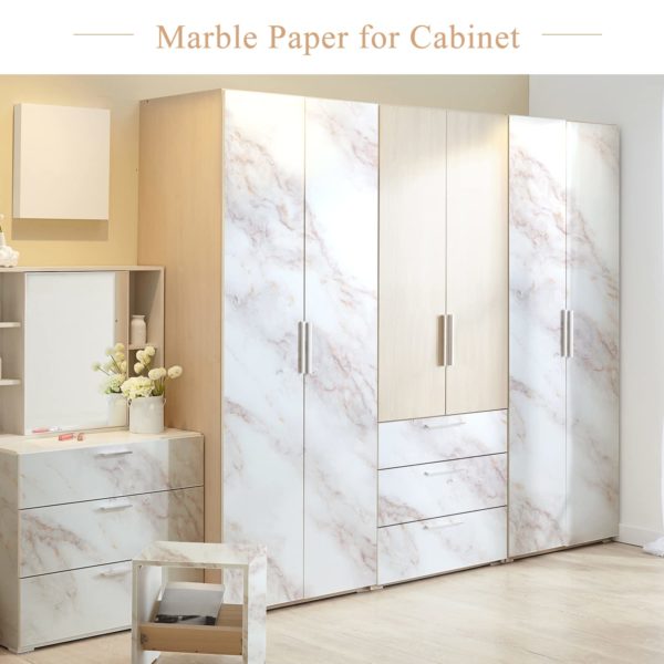 - Glossy Marble Wallpaper USE – Kitchen counter, furniture, notebook, drawer, crafts, bedside table, bookcase, door even wall. Suitable for smooth and flat surfaces. Marble Paper is beautiful which makes it a must-have product whenever you want to restore old furniture. Please use it on a smooth, dry and smooth countertop. Rough and wet countertops will affect the viscosity of the product.