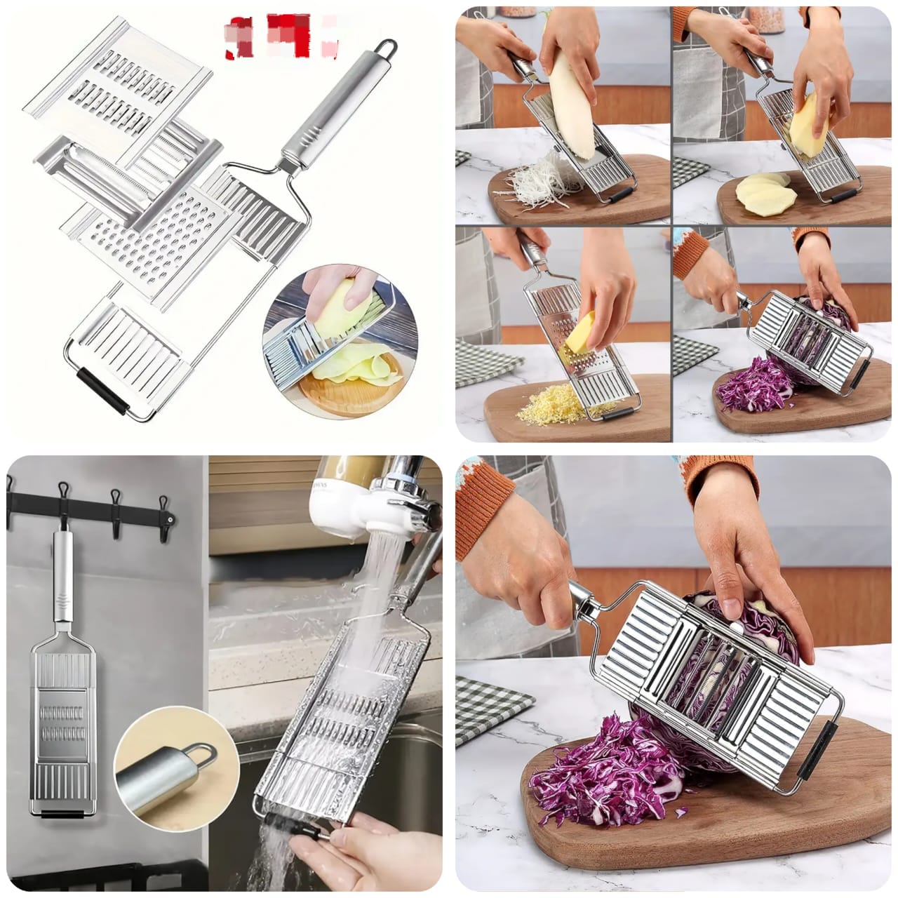 4 in1 Vegetable Slicer Stainless Steel Shredder Cutter Multi-Purpose Vegetable Slicer Cuts Set Manual Fruit Carrot Potato Grater