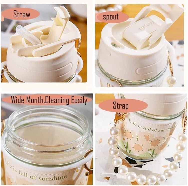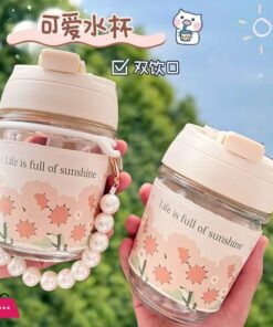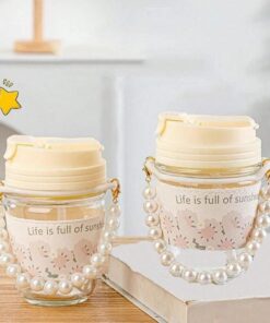 Be the first to review “Cute Glass Water Cup Pearl Bracelet Straw Cup Portable Water Cup Coffee”