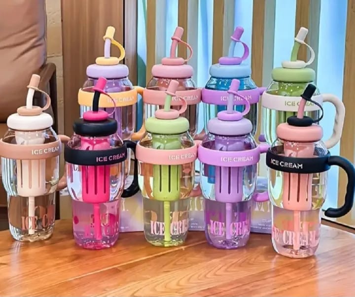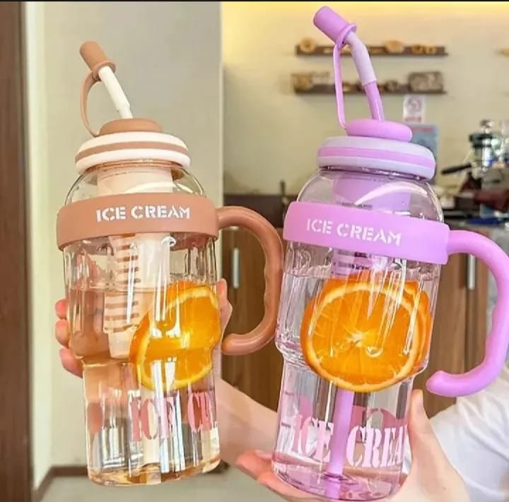 Large Capacity Detox Water Bottle with Straw for Girls | Leakproof Plastic Sports & Gym Mug | Cute Portable Tumbler
