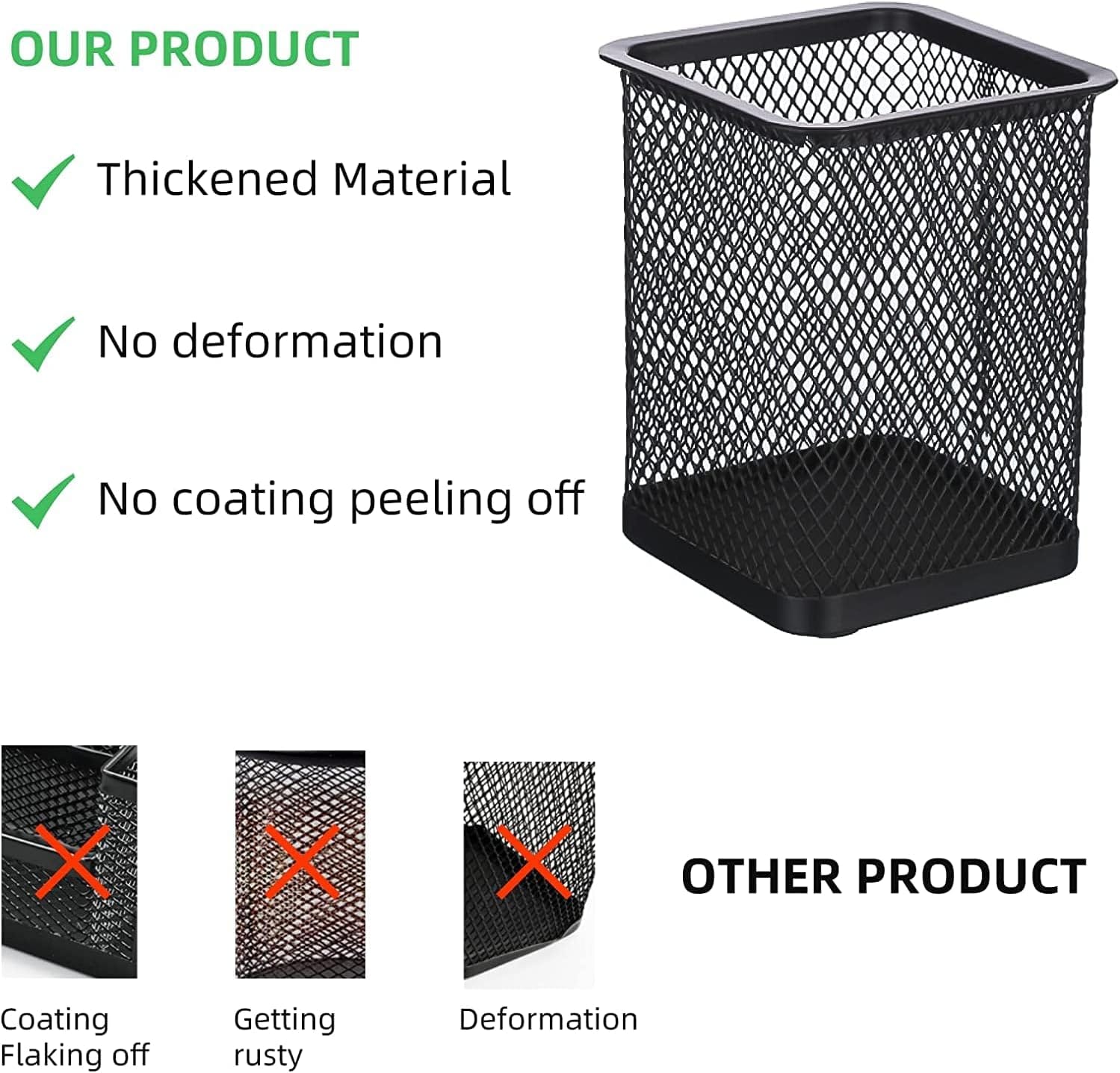 Metal Worison Black Square Mesh Pen Stand Pencil Holder