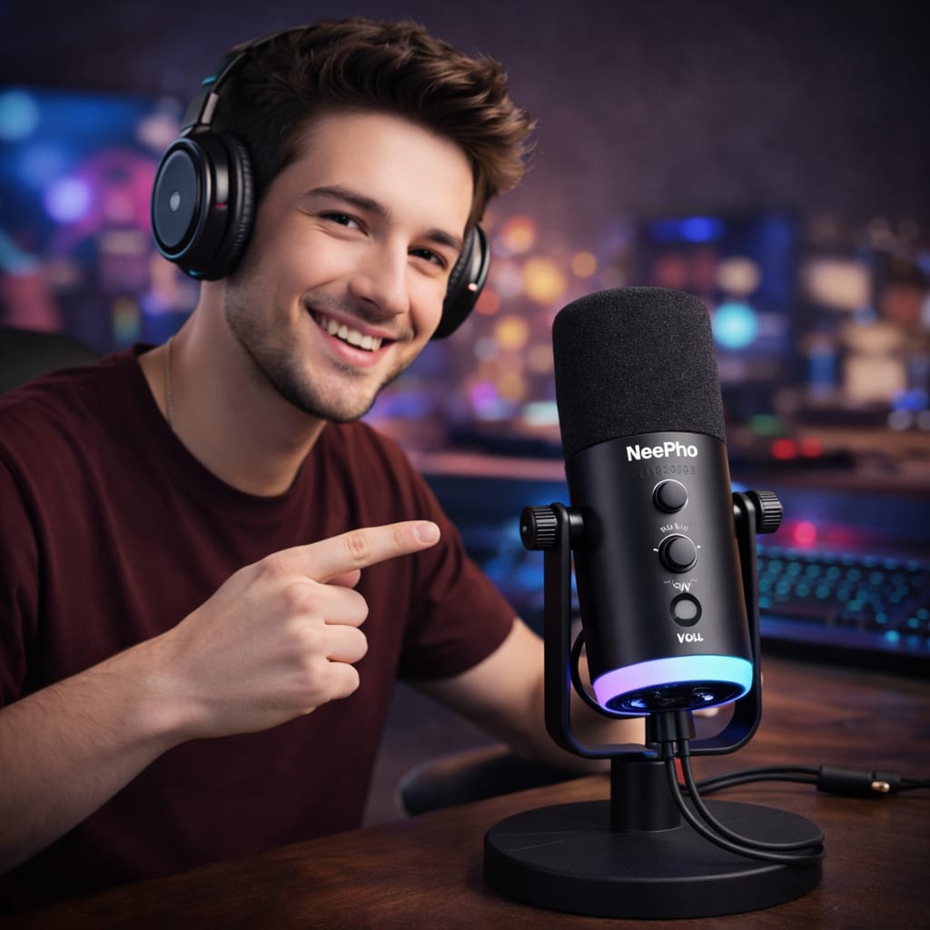 Be the first to review “NeePho NP-M03 Podcast Microphone A condenser microphone with ANC noise reduction, echo control, and RGB lighting”