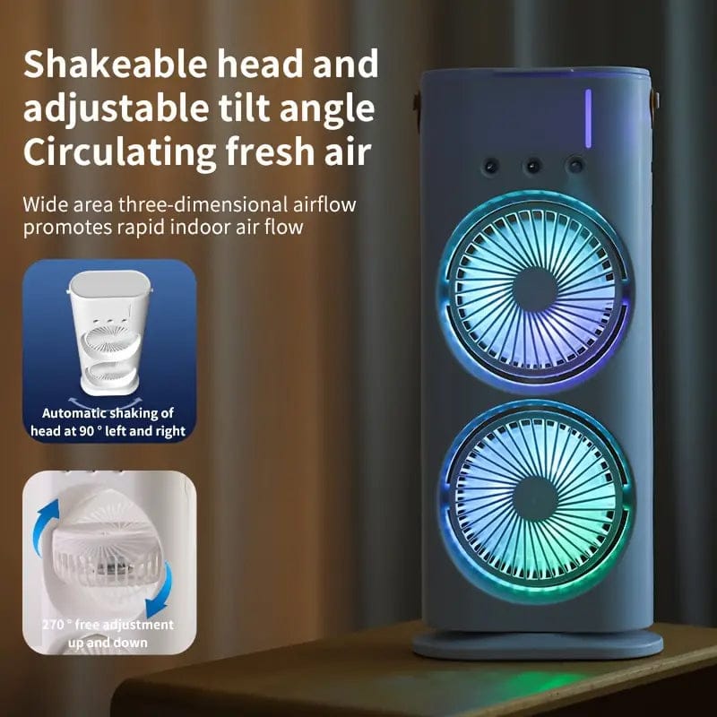 Rechargeable Double Rotating Cool Spray Fan Air Conditioning Fan, Mini Evaporative Air Cooler, Double Mouth Air Conditioning Fan with Mist Spray | Air Cooling Fan for Desk, Nightstand, or Coffee Table