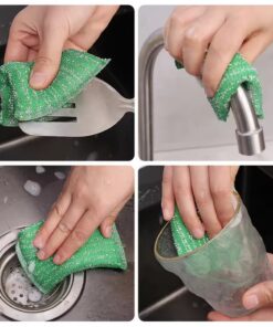 Set Of 4 Kitchen Dishwashing Sponge Fabric, Washcloths Scouring Pads, Wire Strip Diswashing Clothes, Multi-use Cooking Utensils Cleaner, Mirror Multifunctional Flexible Dish Cloth, Anti-deform Comfortable Cleaning Sponge