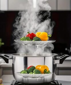Stainless Steel Folding Steamer Basket – Multifunctional Oven, Air Fryer & Steamer Rack for Vegetables, Meat, Fruit