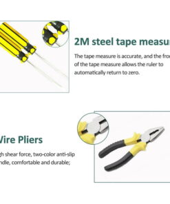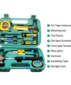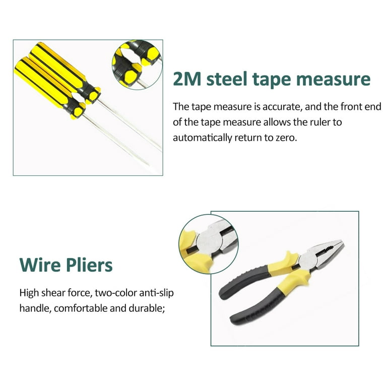 Tool Kit 9-Piece Handheld Tool Set with Hammer, Phillips Screwdrivers, Long-Nose Pliers, Tweezers, Tape Measure, and Tool Box
