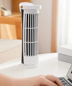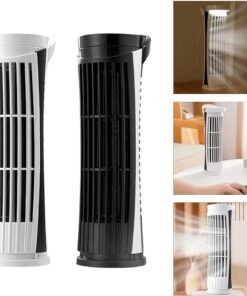 USB Powered Desk Fan Lightweight and Quiet Bladeless Tower Fan with LED Light
