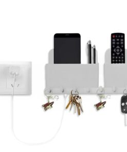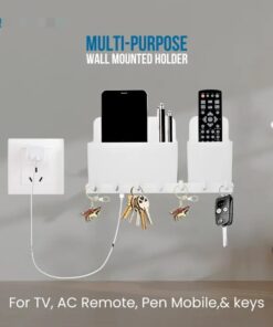 Wall Mounted Mobile Holder for TV, LCD, LED, AC Remotes, Charging, and Key Chain Storage Rack