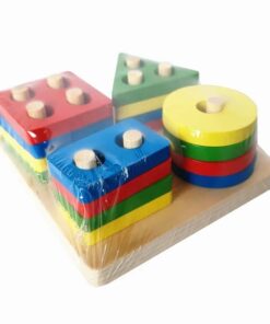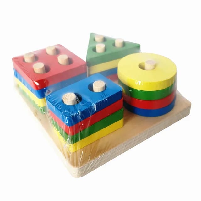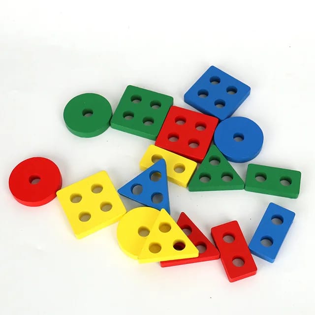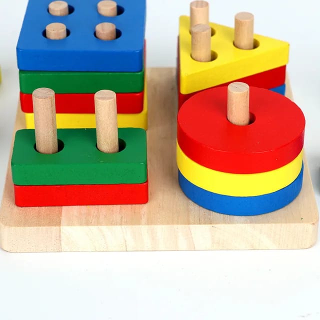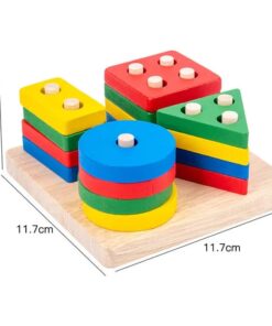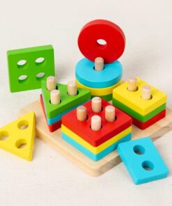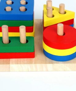Wooden Geometric Shape Color Preschool Educational Wooden Geometric Sorting Stack Toy For Kids
